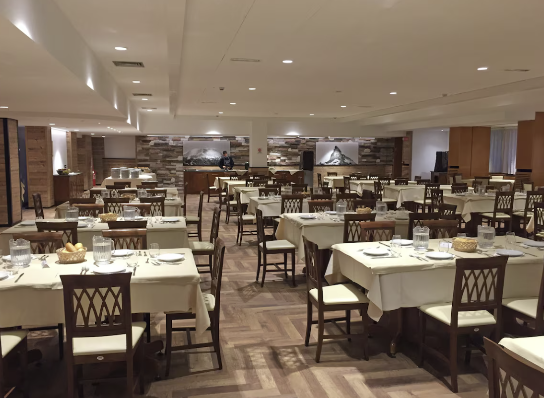 Il ristorante, centrale e panoramico, offre una ricca proposta con servizio a buffet.