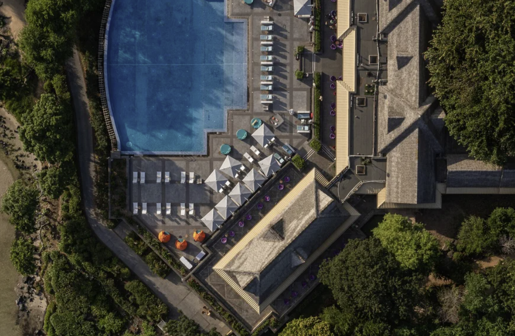 La spiaggia (con zona relax per soli adulti) è di sabbia corallina ed ha accesso diretto ad alcune piscine naturali, inoltre è presente un pontile per raggiungere la barriera corallina.