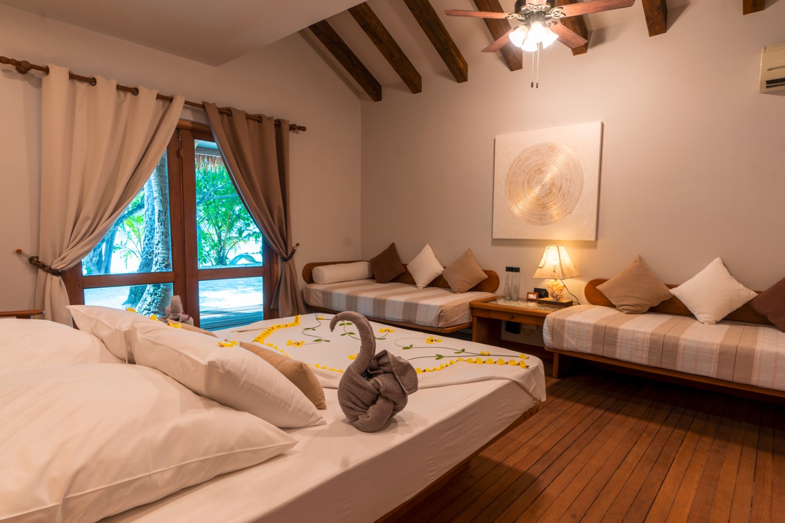 Beach bungalow: disposti lungo il perimetro dell’isola, tutti fronte mare a pochi passi dalla spiaggia, sono dotati di patio in legno. Si dividono in: