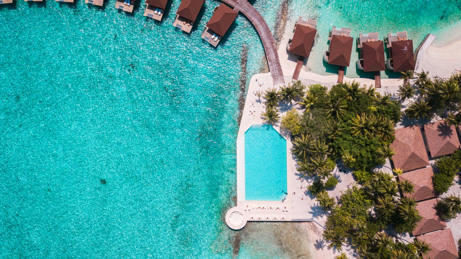 La spiaggia è di sabbia finissima e lambita dalle acque dell’Oceano Indiano e circondata dalla barriera corallina. All’ombra di alte palme tropicali, gli ospiti che soggiornano nei beach bungalow, nei sunset beach bungalow e nei garden bungalow, hanno in dotazione 2 lettini da spiaggia. Gli ospiti sistemati in over water bungalow hanno in dotazione 2 lettini posizionati sulla terrazza di ciascuna camera. Di nuova realizzazione la grande piscina a sfioro sul e una vasca idromassaggio realizzata interamente sul mare, entrambe di acqua salata dell'oceano alimentate con ricambio continuo.