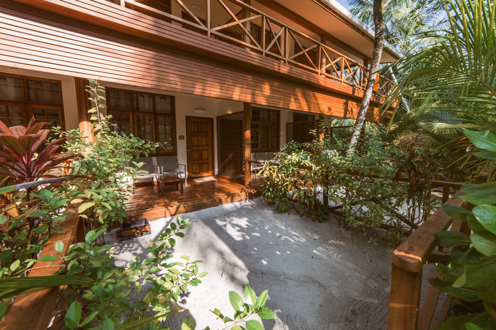 Le camere sono dotate di aria condizionata, ventilatore, cassetta di sicurezza, minibar e quasi tutti hanno il tipico bagno maldiviano parzialmente a cielo aperto. Sono divise in 60 bungalow di diversa tipologia: