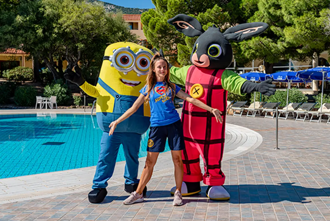 L’equipe di animazione accompagna gli ospiti per l’intera vacanza con un ricco programma di intrattenimento, sport e spettacolo. Hero Camp (dai 3 ai 13 anni ulteriormente diviso per fasce di età) dalle 9,30 alle 18,30 permette ai nostri piccoli amici di vivere una vacanza nella vacanza, con assistenza specializzata, area giochi attrezzata, laboratorio-teatro dei piccoli, ludoteca con giochi. Young Club (dai 13 ai 18 anni) con ritrovo giornaliero per le attività sportive, balli, giochi e tornei, giochi di ruolo e di società.