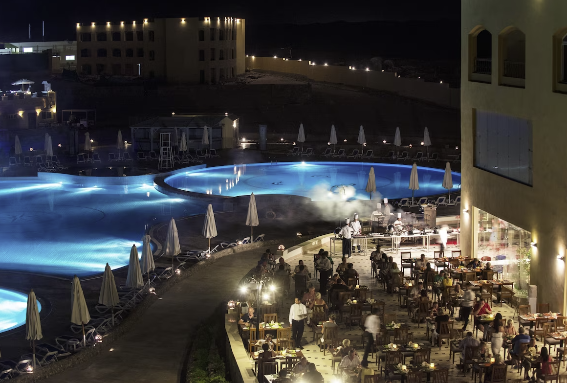 Formula tutto incluso con pasti a buffet presso il ristorante principale “The view” e due tematici à la carte aperti a pagamento a cena: “La dolce vita” (cucina italiana) e “Baraka” (specialità di pesce).