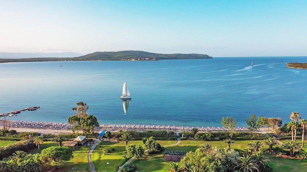 Direttamente sul mare, spiaggia di sabbia fine e bianca, attrezzata.