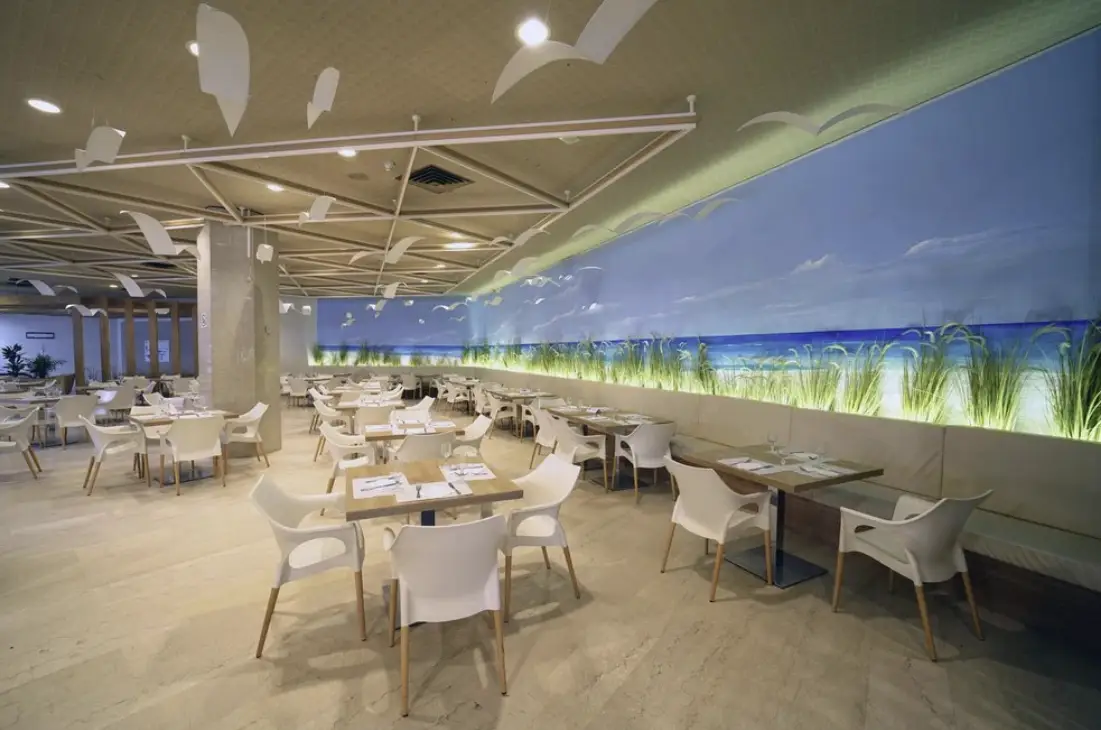 Il ristorante centrale è diviso in varie sale tutte con aria condizionata, terrazzo coperto vista mare e sala adults only (senza aria condizionata), pasti a buffet con piatti della cucina nazionale e locale. Possibilità su richiesta di cucina per celiaci (forniti alimenti base, non garantita assenza di contaminazione).
