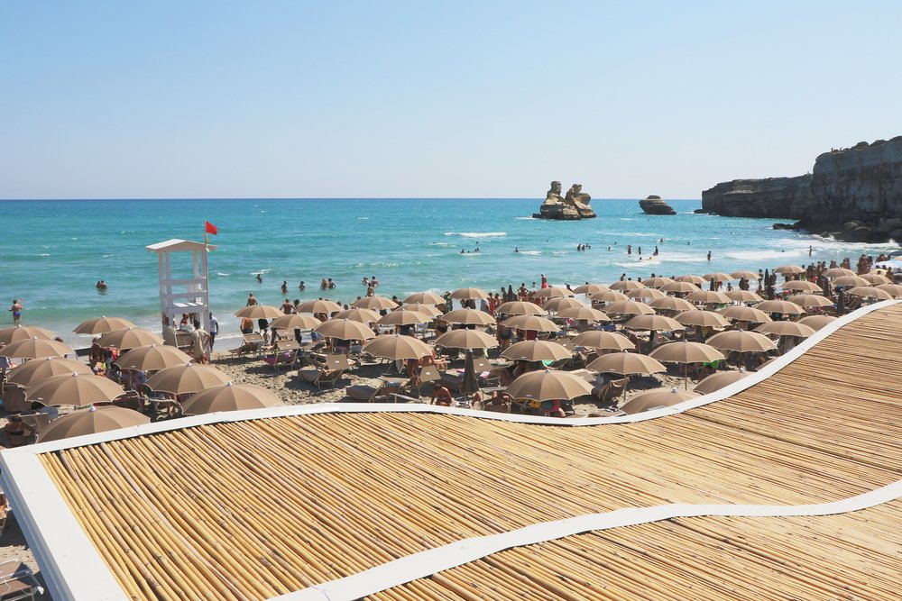 La spiaggia di sabbia fine di Cala di Torre dell’Orso è a 1 km e dispone di uno stabilimento convenzionato e attrezzato con bar, snack lunch e servizi, area privè con vasca idromassaggio (ingresso all’area a pagamento). La spiaggia è raggiungibile con servizio navetta ad orari stabiliti.