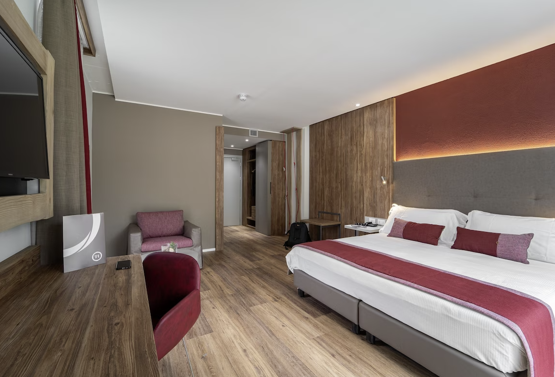 Infine, potrai trovare il centro benessere dotato di sauna finlandese, idromassaggio, docce emozionali, area relax, massaggi e trattamenti, un’area fitness e una piscina panoramica affacciata.