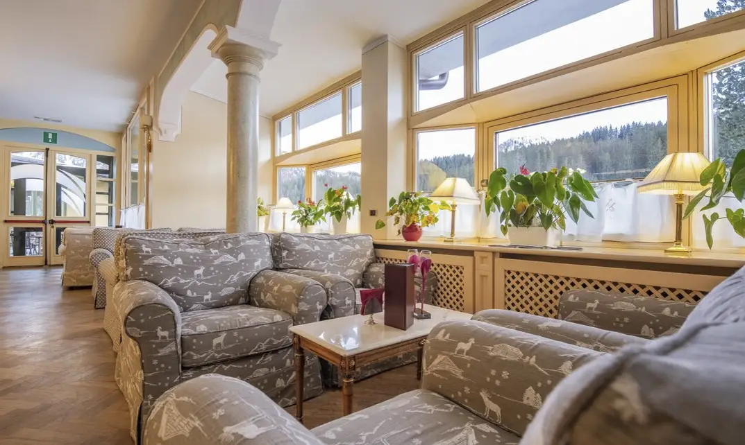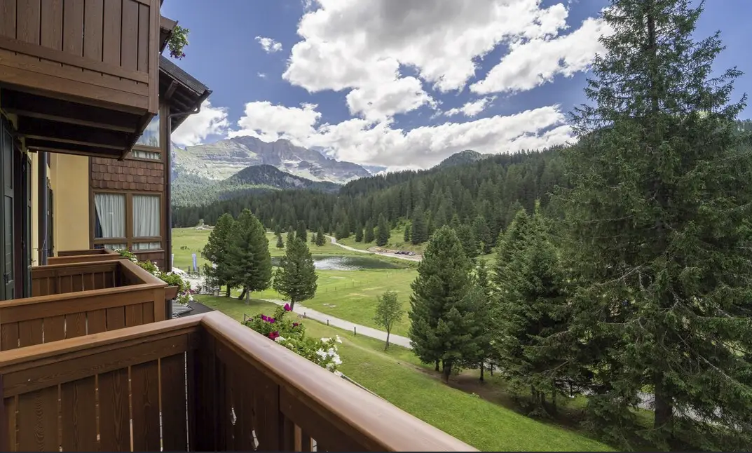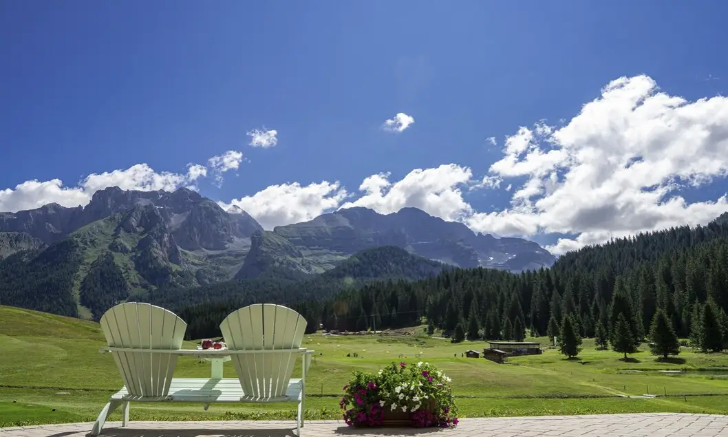È situato nella piana di Campo Carlo Magno, immerso tra le maestose Dolomiti del Brenta e i ghiacciai della Presanella e dell’Adamello.