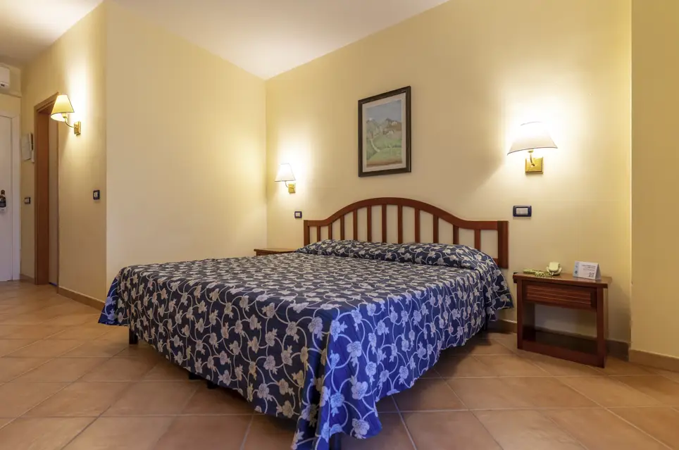 La struttura dispone di camere confortevoli di varia tipologia: doppie, triple, quadruple a unico vano, e family room (quadruple e quintuple composte da due camere comunicanti). Tutte le camere sono dotate di servizi privati con doccia e asciugacapelli, balcone, aria condizionata, Wi-Fi, TV, telefono e frigobar.