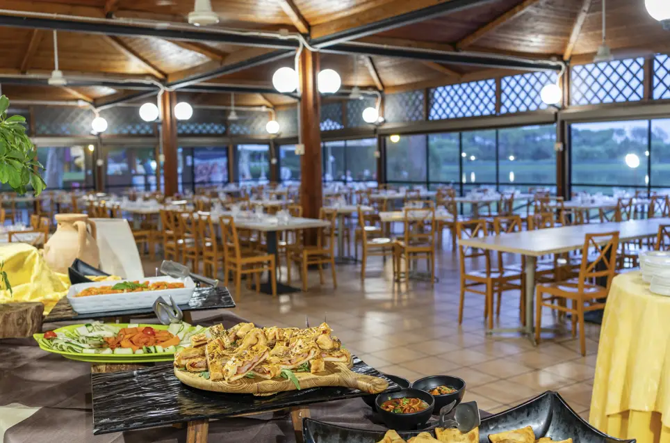 Il ristorante, offre un servizio a buffet, con una cucina di impronta mediterranea unita a una proposta di piatti tipici della tradizione calabrese. Previa richiesta si realizzano piatti per intolleranti (alimenti di base forniti confezionati ai pasti), con obbligo di segnalazione all’atto della prenotazione e soggetta a riconferma (la struttura non dispone di un’area separata per cucina per celiaci).