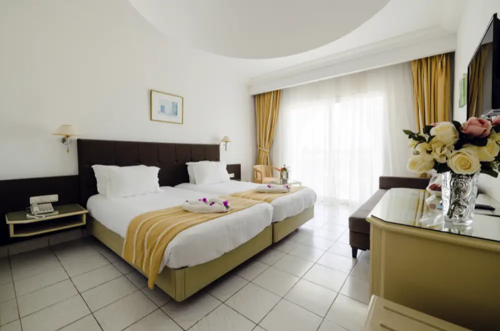 La struttura dispone di camere dotate di servizi con vasca o doccia, asciugacapelli, aria condizionata, telefono, TV, cassetta di sicurezza, mini frigobar rifornito all’arrivo, terrazzo. Le tipologie si suddividono in: Classic, Superior, Family Room Classic, Family Room Superior, Junior Suite, Suite Ambassador.