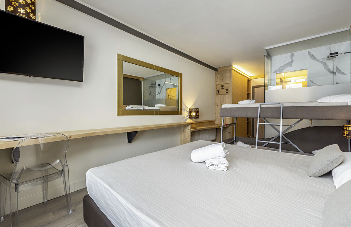 Le camere, interamente ristrutturate nel 2021, sono arredate nel rispetto della tradizione montana e dotate di tutti i comfort. Sono disponibili di tipologia doppia, tripla e quadrupla con letto a castello. Alcune camere dispongono di balcone e alcune sono predisposte per accogliere persone disabili.
